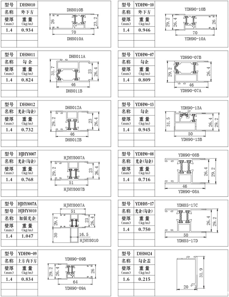 当前位置:首页 > rabybet雷竞技 > 穿条系列3.型材表中米重仅为型材理论重量,不包含胶条重量,因型材表面处理及包装方式不同,会对型材的实际重量产生差异。(双12mm胶条胶重约0.08kg/m,双14.8mm胶条胶重约0.1kg/m)