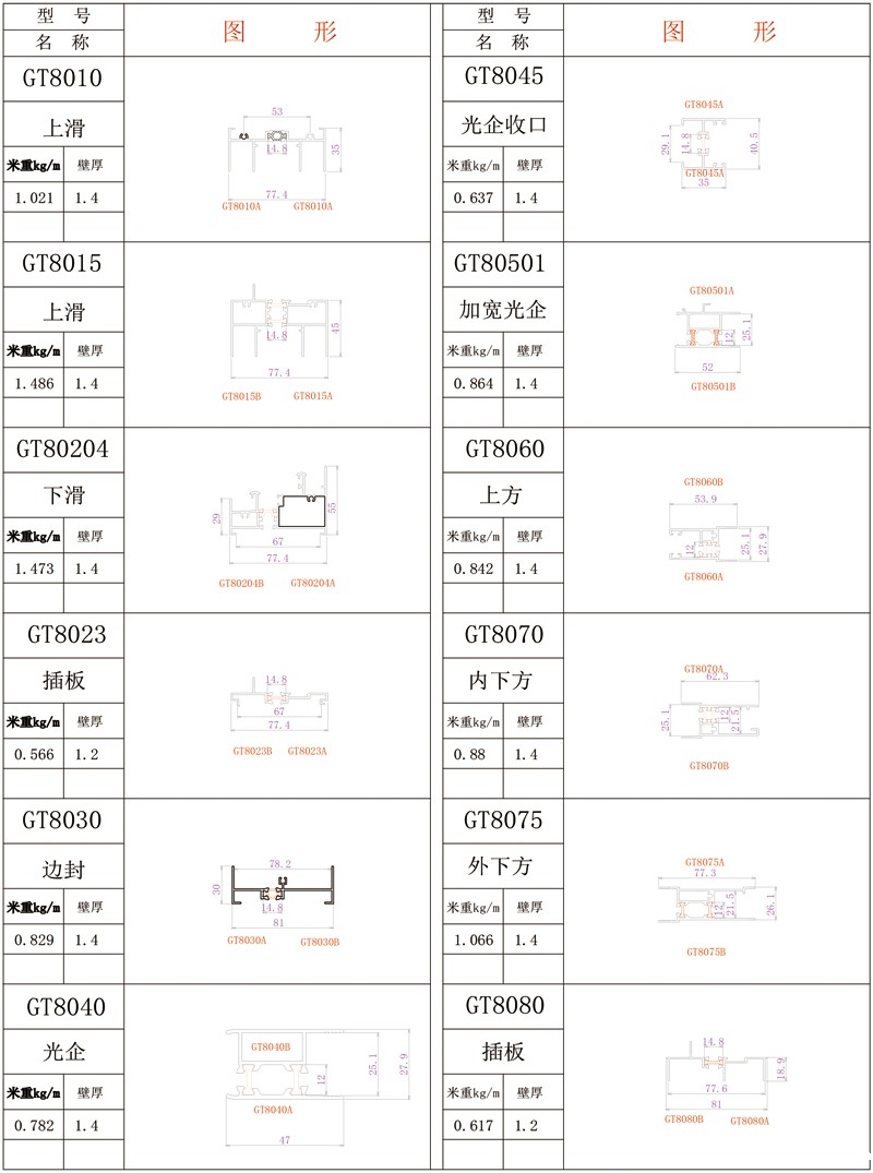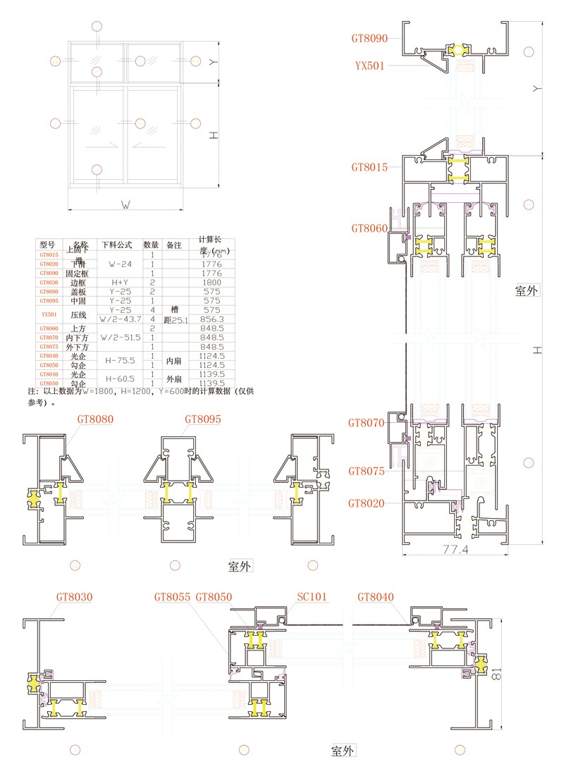 GT80系列穿条式断桥铝合金推拉窗结构图