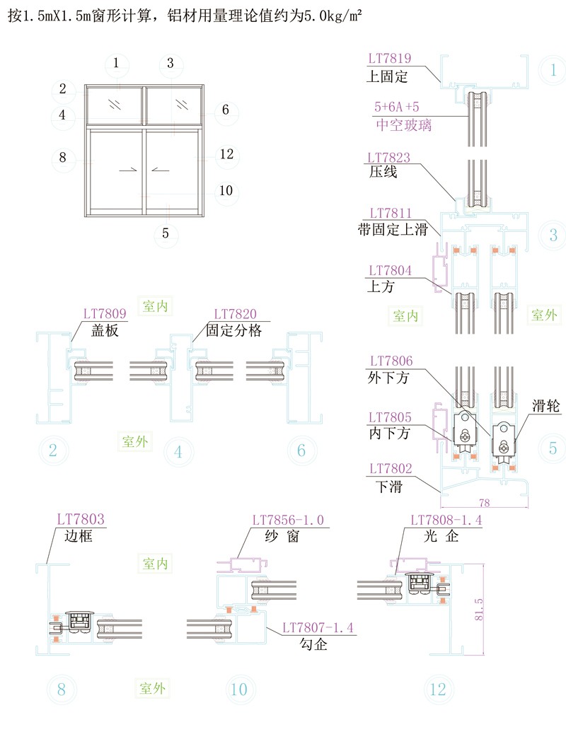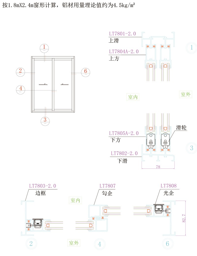 1.LT78推拉门窗采用高低轨设计,内高档水边,具有优越的水密性、气密性能;