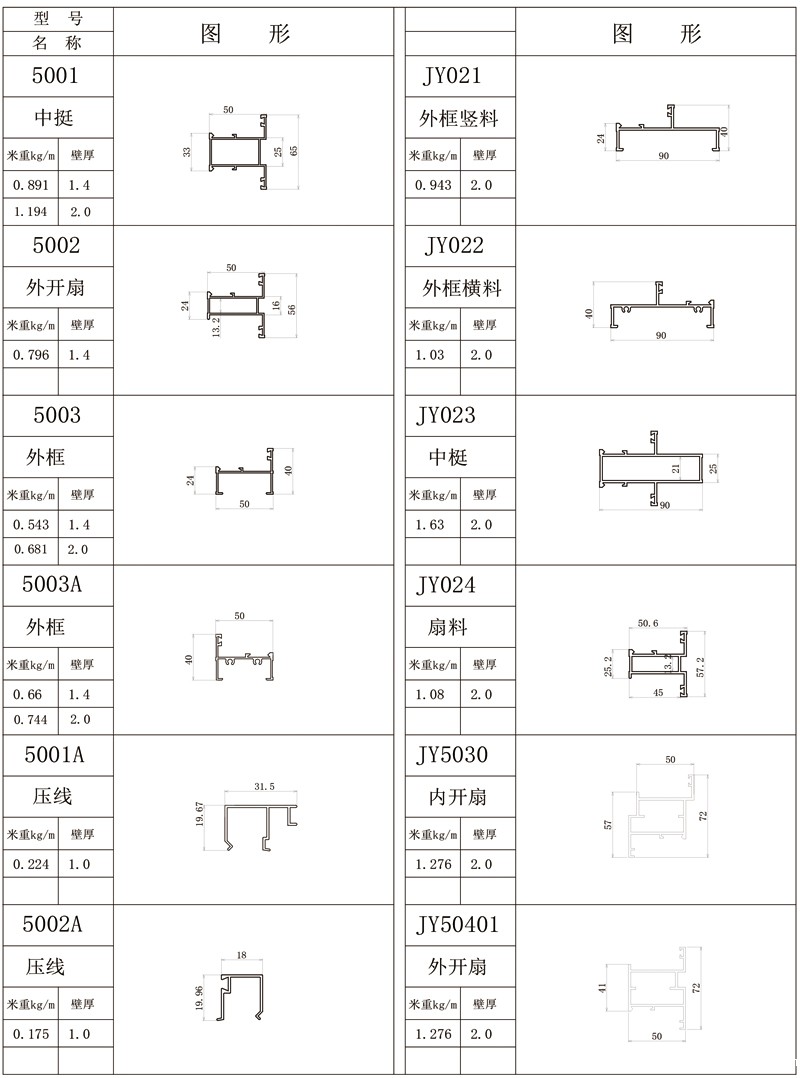 50平开系列简图